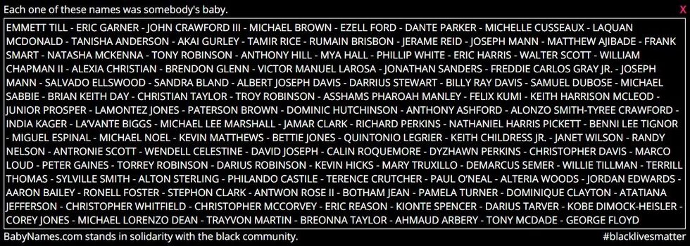 The website that helps parents-to-be select a baby name added a black banner to the top of its homepage featuring the names of dozens of black people who have been killed by the police or—in a few cases— at the hands of civilians.