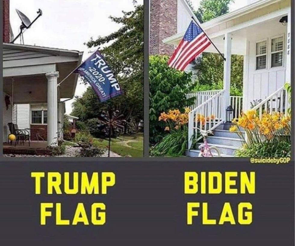 Don Jr.'s dim-witted tweet got a lot of great responses from Biden supporters who proudly fly the American flag. A lot of people also commented with photos of Trump supporters flying Confederate and Nazi flags, two movements that Americans proudly defeated in the past.
