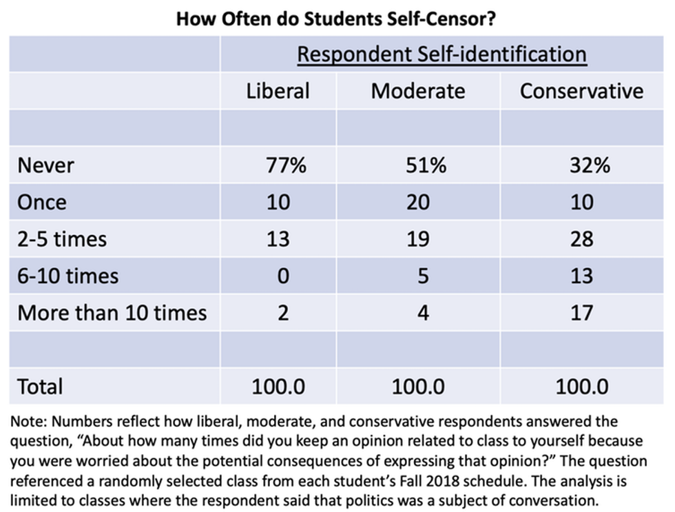 For each student who responded, we randomly chose one class from their schedule and asked – for that particular class – how many times during the semester they kept a sincere opinion related to class to themselves because they were worried about the consequences of expressing it.