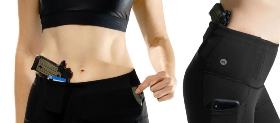 Last week, "Fox Nation" host and conservative commentator Tomi Lahren launched her new athleisure line, "Freedom." The line features star-spangled yoga pants that allow you to conceal and carry a handgun.