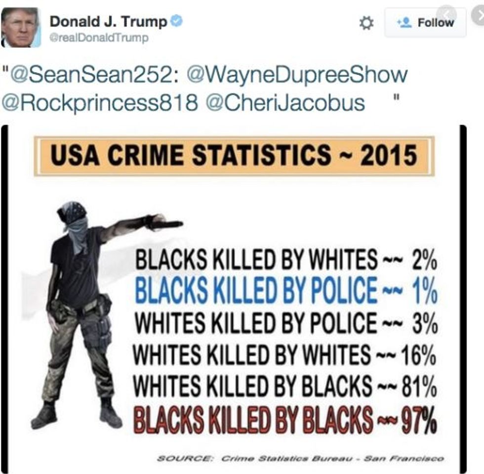 He also tweeted out a meme with fake crime statistics about black people that was created by a neo-Nazi who praises Adolf Hitler in his profile.