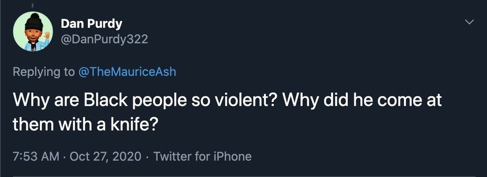 She discovered that Dean Browning has a gay, Black Twitter alter ego named Dan Purdy and he forgot to switch accounts before tweeting his response.